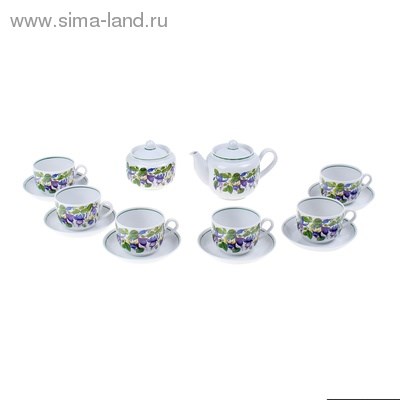 Сервиз чайный "Фуксия", 14 предметов: 6 чашек, 6 блюдец, чайник, сахарница