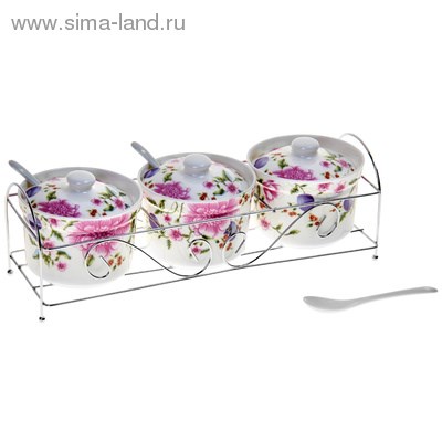 Набор банок для сыпучих продуктов 300 мл 3 шт "Георгин", на подставке