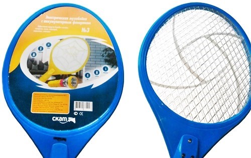 Электрическая мухобойка малыми разрядами электрического тока уничтожает