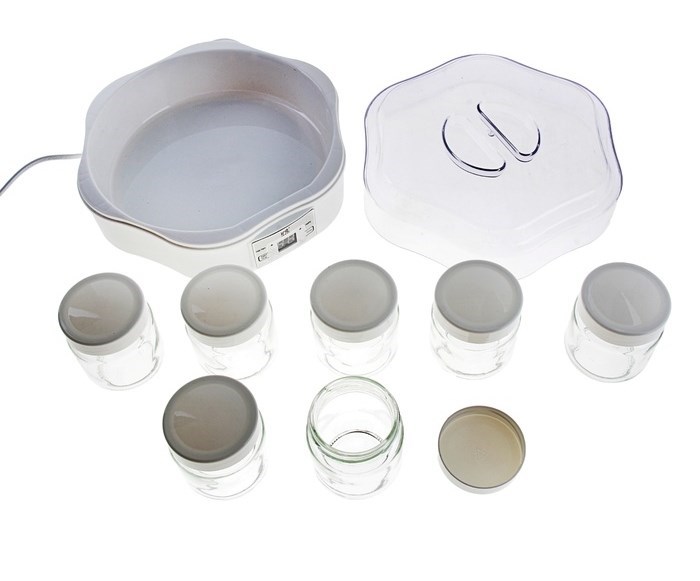Описание Хотите радовать своих близких вкусными и полезными йогуртами каждый день? С помощью новой йогуртницы IRIT это проще простого! Достаточно просто добавить необходимые ингредиенты и спустя некоторое время можно наслаждаться настоящим домашним йогуртом. Домашний йогурт быстро и легко! Надежная йогуртница непременно должна присутствовать на кухне любой хозяйки, ведь с ее помощью, вы сможете легко и быстро приготовить вкусные и полезные йогурты для всей своей семьи. Секрет правильного приготовления йогуртов Заключается в постоянном поддержании необходимой температуры и йогуртница IRIT идеально справляется с этой задачей, а благодаря специальной функции автоотключения Вы можете не беспокоится о том, что забудете отключить ее и испортите продукт. Просто выберите необходимый режим, а йогуртница сама настроит температуру и время приготовления. Преимущества: Удобно использовать; Функциональный дизайн; Легко помыть и почистить; Автоматическое приготовление; Таймер; Прозрачная крышка, благодаря которой можно следить за процессом приготовления; Несколько секретов полезных и невероятно вкусных домашних йогуртов: Для того, чтобы Ваш йогурт был действительно вкусным и полезным необходимо позаботиться о чистоте того молока, которое вы используете. По этому мы рекомендуем Вам довести молоко до кипения и прокипятить на слабом огне его еще минут 5. Также очень важна стерильность и чистота используемой посуды. Каждая хозяйка выбирает свой рецепт, но мы предложим Вам несколько: - просто обдайте баночки кипятком, простерилизуйте их в микроволновке или пароварка. Готово. Далее необходимо правильно ввести в молоко специальную закваску. Для этого мы заливаем немного молока во флакон с закваской, в соотношении около где-то до 2/3, хорошенько закрываем крышечкой и тщательно разболтаем до полного растворения закваски в молоке. Полученную смесь вливаем в кастрюльку с кипяченым молоко, и опять все очень тщательно перемешаем. Теперь осталось самое простое - разлить полученную смесь по баночкам и установить их в йогуртницу. Затем накрываем ее крышкой, включаем в сеть и выбираем необходимый рецепт. После завершения готовки наслаждаемся прекрасным домашним йогуртом. Характеристики: Мощность 20 Вт Объем 1,4 л 7 стеклянных чашек Таймер – 24 часа Рабочая температура - 40 градусов Вместимость - 7 емкостей Материал емкостей – Стекло Материал крышки – Пластик Материал корпуса – Пластик Объем емкостей - 200 мл Рабочее напряжение -220-240V/50Hz Отзывы об Йогуртница Irit Ирина 23 марта 2013 Недавно мне мама подарила эту модель йогуртницы. У меня ребенок обожает йогурты. И вот теперь делаем вкусные кисломолочные напитки. Для сына йогурты, муж любит кефир, а я очень люблю ряженку. Можно все делать одновременно, что очень удобно. На ночь ставлю, а рано утром уже все готово. Всегда все свежее. Закваску сначала брала с магазинных продуктов, а сейчас у меня уже своя закваска ею и пользуюсь. Хороший прибор и очень полезный. Особых недостатков не заметила Алина 07 мая 2013 Это чудо мне муж подарил на день рождения. Признаюсь что еще год назад считала йогуртницу самым бесполезным прибором))))ну как-то не понимала, в чем смысл целого агрегата для получения йогурта из йогурта)))И вот уже три недели как я горячий фанат йогуртниц))Расписывать особенности дизайна и работы думаю смысла 