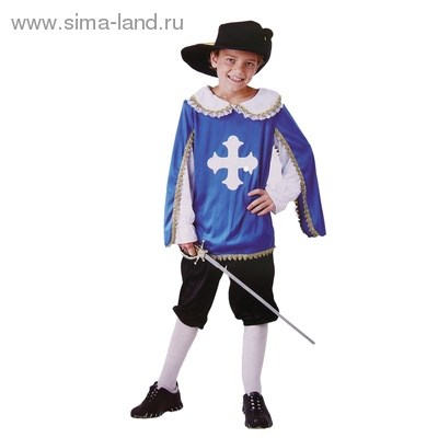 Карнавальный костюм "Мушкетер" синяя накидка, 3 предмета: накидка, штаны, шляпа 120-130 см