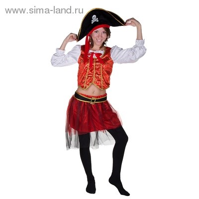Карнавальный костюм "Пиратка", 4 предмета: шляпа, рубаха, юбка, пояс 130-140 см