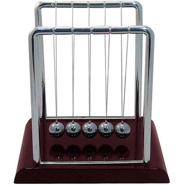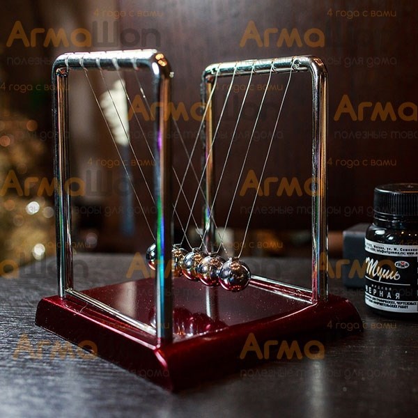 Описание Отличный интеллектуальный подарок для каждого! Скульптура-маятник отражает сущность закона Ньютона о сохранении энергии и передаче импульса. Известный английский математик заметил, что если отклонить и отпустить первый шарик, то импульс и энергия передадутся через три средних шарика к последнему, который аналогично первому поднимется на ту же высоту с одинаковой скоростью. Импульсы текут туда-обратно, крайние шарики взлетают, пока средние остаются недвижимыми. Кому подарить? Преподнести подобную игрушку можно как ребенку, так и взрослому - другу, коллеге, начальнику. Помимо интересного эффекта маятника, сувенир является красивым и элегантным украшением для письменного стола или консоли. Наблюдать за мелодично постукивающими шариками можно бесконечно! За релаксирующий и расслабляющий эффект маятник был также назван как "Колыбельная Ньютона". Преимущества подарка На любой повод (и без повода!). Будет интересен человеку любого возраста. Обладает высоким интеллектуальным смыслом. Элегантный дизайн подойдет к интерьеру любого стиля. Размер 120 х 140 х 40 мм Упаковка Фирменная коробка из картона с описанием на русском языке, целлофановая обертка. Сувенир состоит из пяти металлических шариков, которые подвешены на тонкой леске на две параллельные рамки. Интересный факт Сам Ньютон, конечно же, и подумать не мог о релаксации своего открытия, так что изделие было придумано в 1967 году британским актером Саймоном Пребблом, который был очарован наглядным отражением передачи импульса. Видеоролик Смотрите наглядное видео, которое демонстрирует все возможности шаров Ньютона: Отзывы о "Шары Ньютона средние "Эврика" Татнюшка 15 декабря 2014г. Достоинства: оригинально, недорого, интересно. Недостатки: быстро останавливаются шарики, леска иногда рвётся. Комментарий: маятник Ньютона я получила в подарок. Да и сама пару раз дарила такой же. Считаю, что это достаточно необычный, оригинальный и не очень дорогой подарок. Цена варьируется от 350-850 рублей ( то, что я видела ) Маятник небольшой, шариков пять штук. Классная успокаивающая игрушка, такой антисресс. Сидишь, смотришь, как шарики ударяются друг об друга. Единственное, что не очень нравится, это то, что шарики быстро останавливаются и надо часто их трогать. Также проблема будет, если леска, на которой шарики висят, запутается. Можно даже порвать её, если неаккуратно распутывать. Ну а в целом, неплохой элемент декора, украшение для стола и просто убивающая время и расслабляющая штучка. katrinka1991-08 15 апреля 2014г. Достоинства: успокаивает. Недостатки: очень быстро останавливаются. Комментарий: Муж попросил ему на день рожденья подарить Вечный маятник Ньютона. я его ему купила. стоимость 350 рублей. высота стоек составляет 17 см, ширина с подставкой 23 см, сами шарики 1 см. стойки пластмассовые так же как и большая, просто огромная подставка. самого завода шариков хватает буквально на 15 секунд не больше. я этим расстроена оказалась, я думала что их завел и они стучат и стучат, пока сам не остановишь. мне кажется что первый и последний шарик висят ниже чем все остальные, я попробовала убрать первый и последний шарик, шарики застучали намного дольше и потом просто перешли в равномерное покачивание и качаются просто так минут 5. может время качания-постукивания зависит от количества шариков и из чего они сд