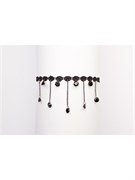 Описание Чокер "АНГЕЛИНА" -элегантное ожерелье-чокер среднего размера в виде мягкого кружева из черных кругов, соединенных между собой. В передней части аксессуар украшен поблескивающими черными подвесками на цепочках разной длины -короткие и длинные нити чередуются между собой.