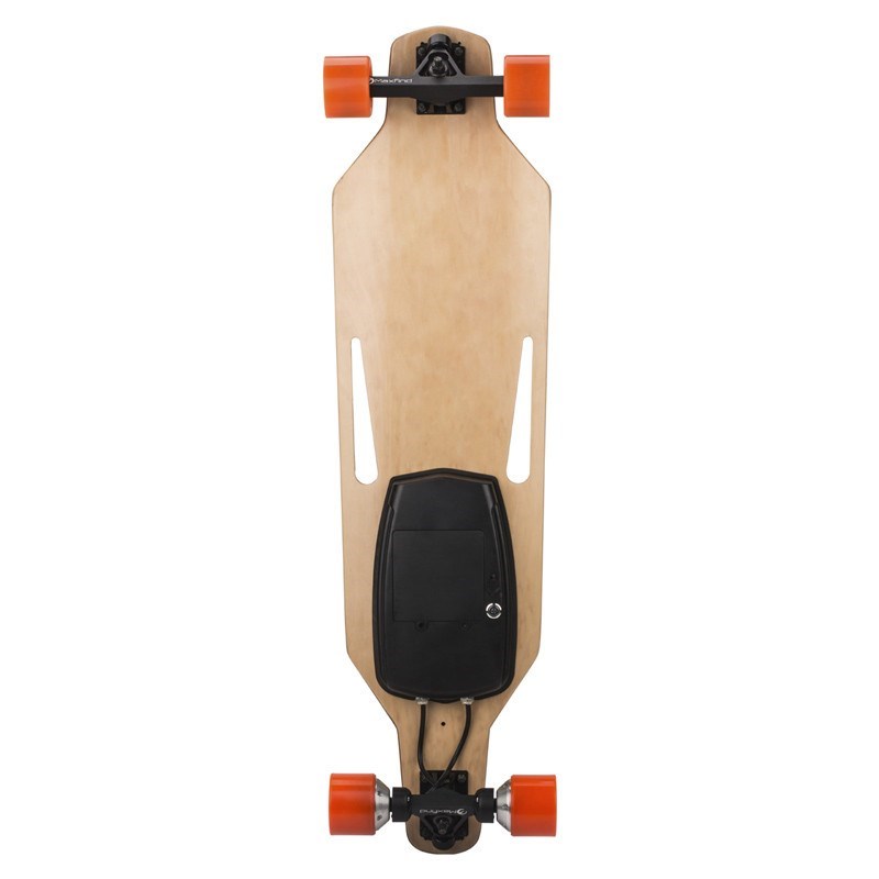 Данная модель имеет визуальное отличие от других. Восьмислойная дека выполнена в изогнутой вверх форме - это позволяет лучше чувствовать устройство, что положительно влияет на управляемость. Благодаря большому размеру платформы на электро лонгборде легко стоять, а специальное покрытие исключает скольжение. Удобное положение и уверенная стойка - это гаранты приятной прогулки на электроскейте.