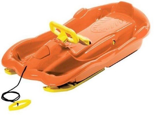 Описание Размеры 100х54х23см, широкие лыжы, центральный тормоз, металлический рулевой привод, противоскользящие сиденье, площадка для стоп.