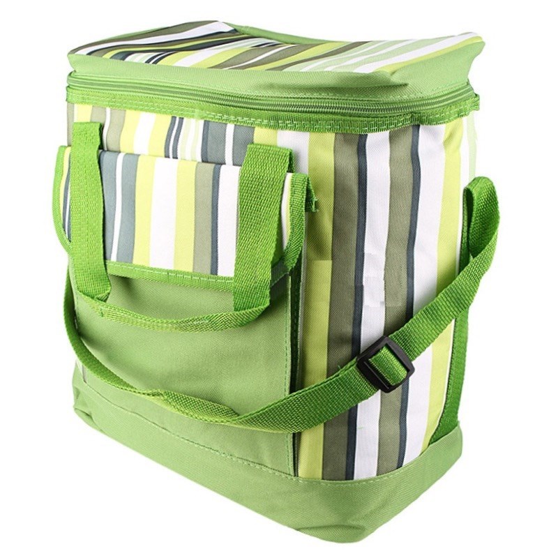 Изотермическая термосумка "Green Glade" пригодится на любом пикнике. Изнутри термосумка отделана специальным теплоизолирующим материалом, способным надолго сохранить холод, даже в жару. Сохранение температурного режима до 12 часов. Снаружи сумка изготовлена из плотного полиэстера с принтом в разноцветную вертикальную полоску. Достаточно вместительна, подходит для хранения и пищи, и напитков. Имеет одно основное отделение, закрывающееся на молнию. Спереди содержится кармашек для хранения столовых приборов и салфеток, закрывающийся клапаном на липучку. Для удобной переноски сумка оснащена двумя ручками и отстегивающимся плечевым ремнем.